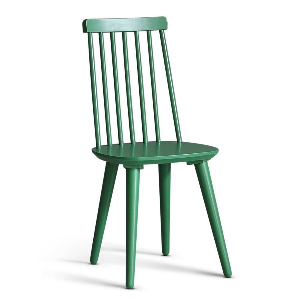 Dalsland matgrupp med stort och bra matbord med toppskiva i oljad ek och svartlackat underrede. 6 st Dalsland pinnstolar i en läcker grön lack (RAL6001)