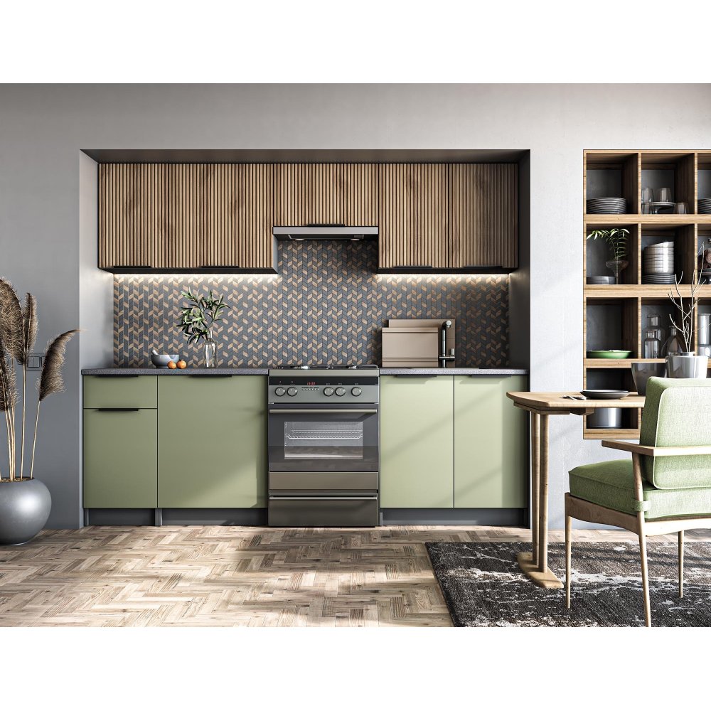 Ksenia komplett kök 240 cm - Ljus valnöt/pistasch/antracit/grå