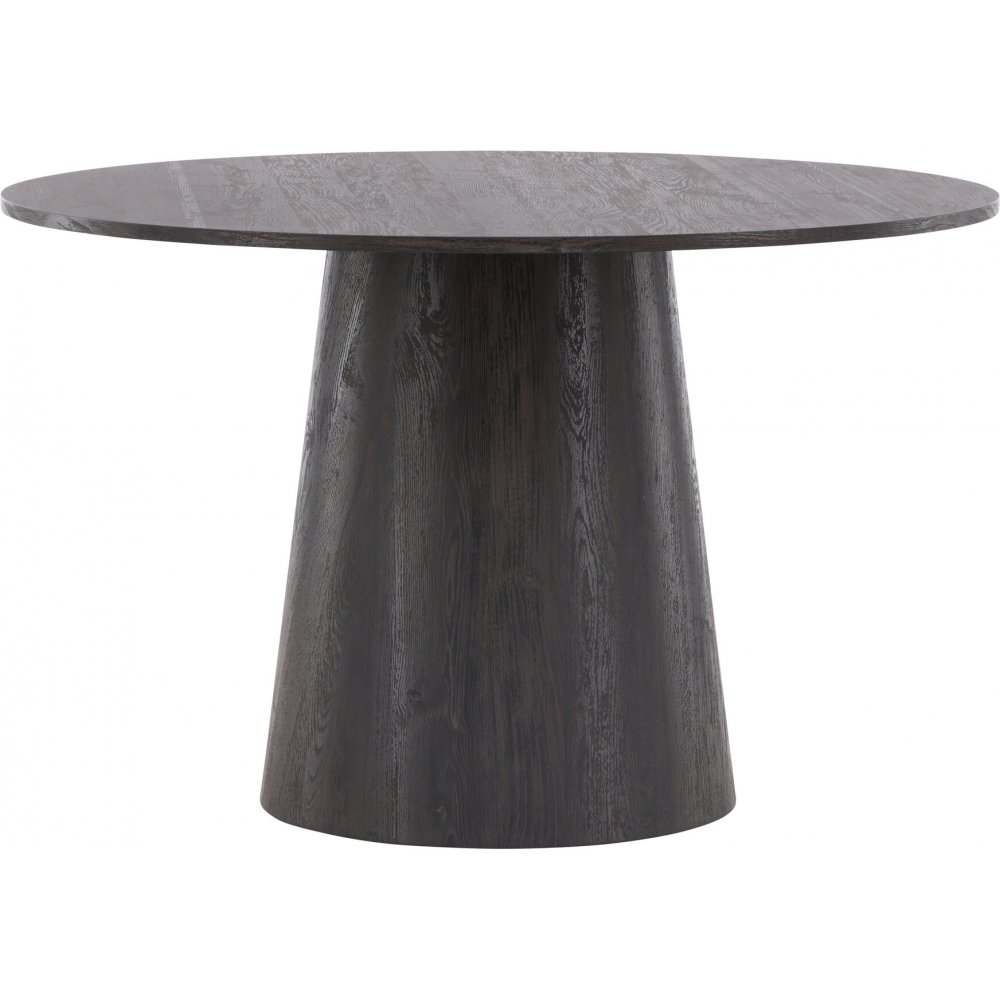 Matbord som imponerar med sin Skandinaviska design och smakfulla utformning. Bordet har en genomgående helhetsdesign i svart MDF med en tunn, rund toppskiva och en vriden cylinderformad stomme som är centrerad under bordets mitt. Kulören är tidlös och synliggör fortfarande materialets mönster som ger liv och rörelse till bordet. Skapa ett stilrent blickfång i hemmets hjärta - här hamnar ingen på kanten.