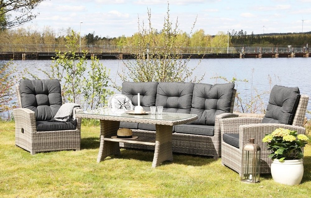 - Orlando utemöbelgrupp hög rygg ställbara fåtöljer - Grå/beige