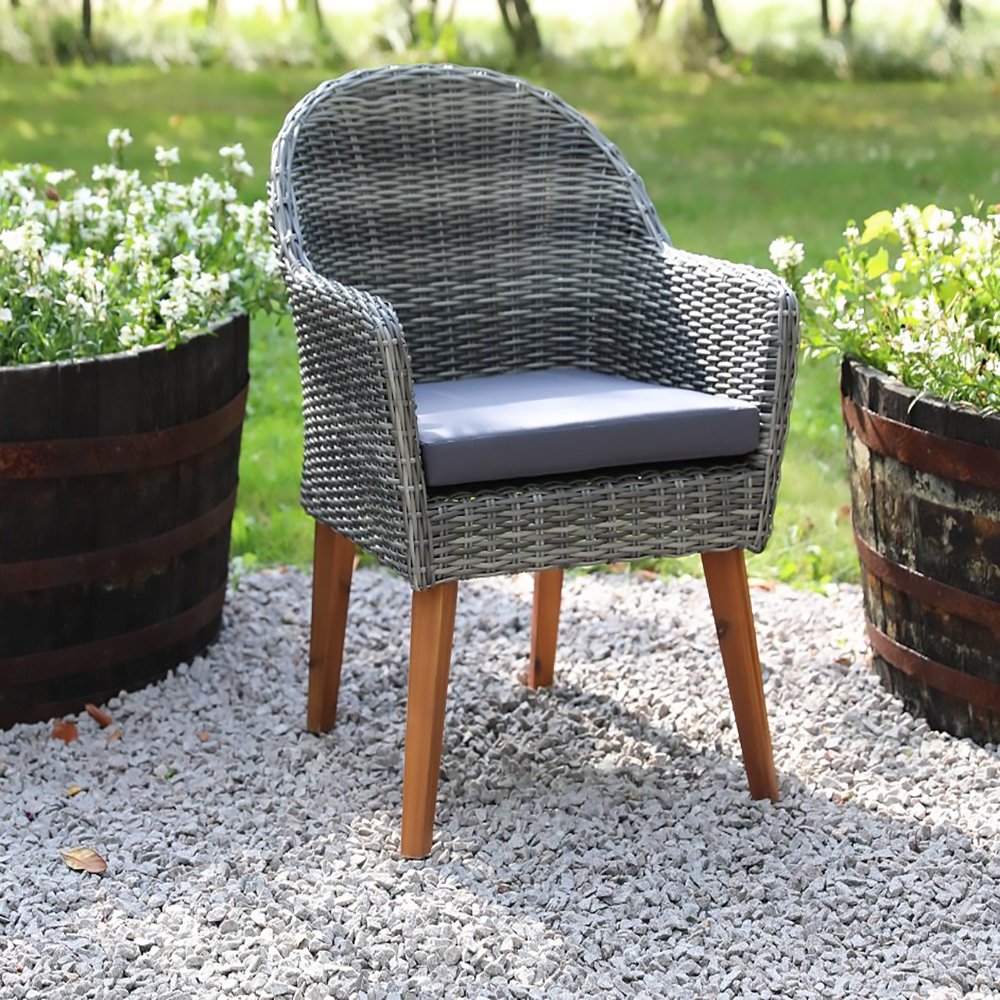 Inklusive 6 st Valetta fåtöljer i matchande grå konstrotting med sittdyna för bästa komfort. Matgruppen passar perfekt på altanen, uteplatsen och i uterummet.