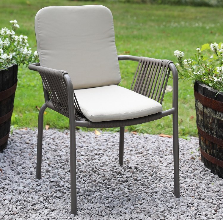 Inklusive 6 st sköna Lincoln stapelbara karmstolar i grålackad aluminium stomme med en beioge dyna för rygg och sits. Matgruppen passar perfekt på altanen, uteplatsen och i uterummet.