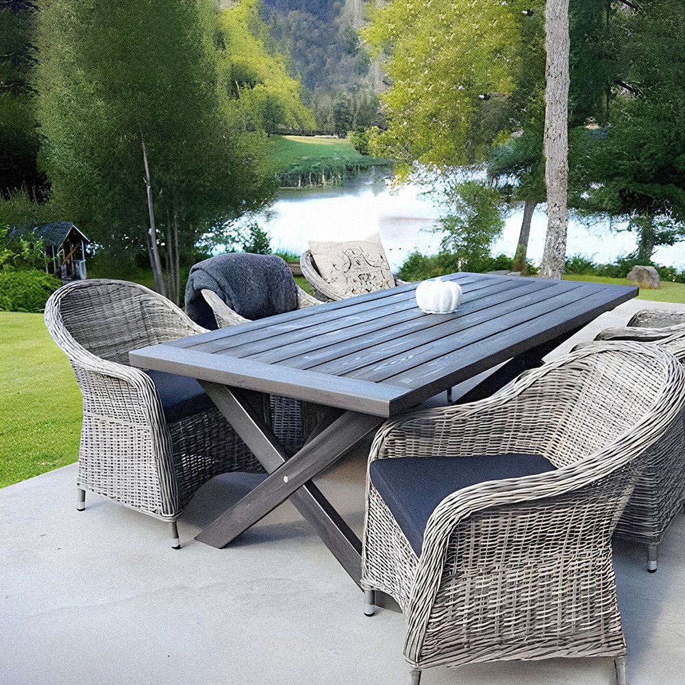 Oxford utematgrupp; grått bord 220 cm inkl 6 st Mercury fåtöljer grå konstrotting