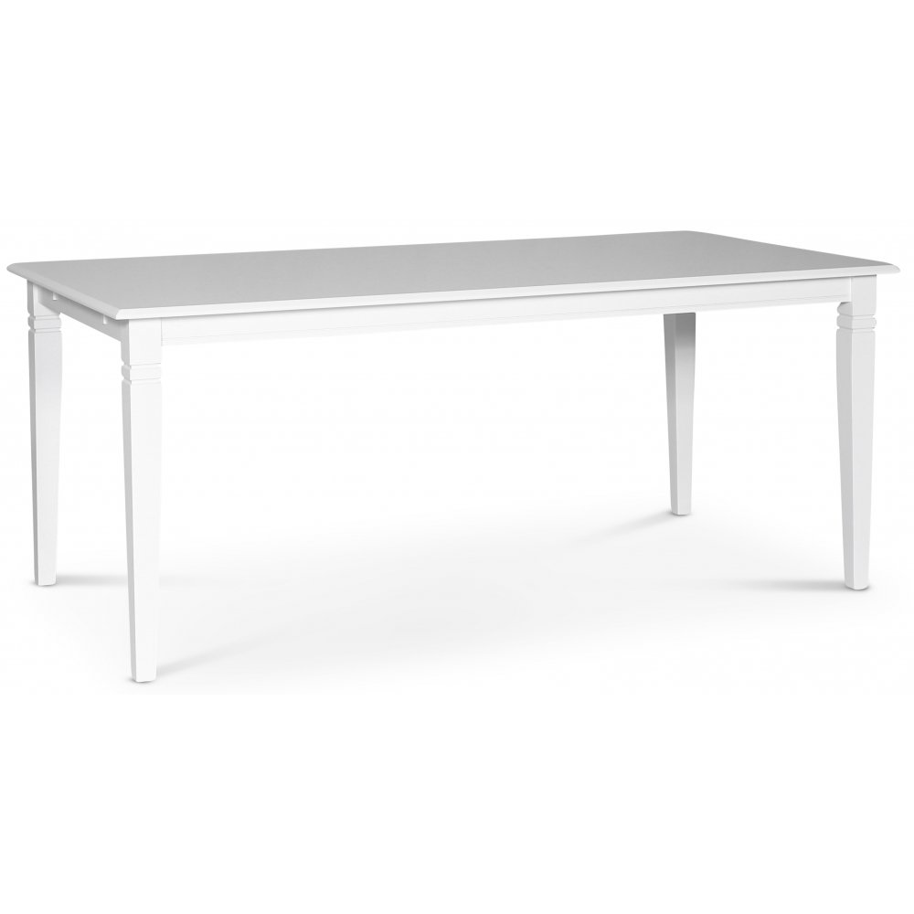 Sandhamn matgrupp Klassiskt utförande. Stilrent matbord 180x90 cm matbord med vitlackade ben och bordsskiva.