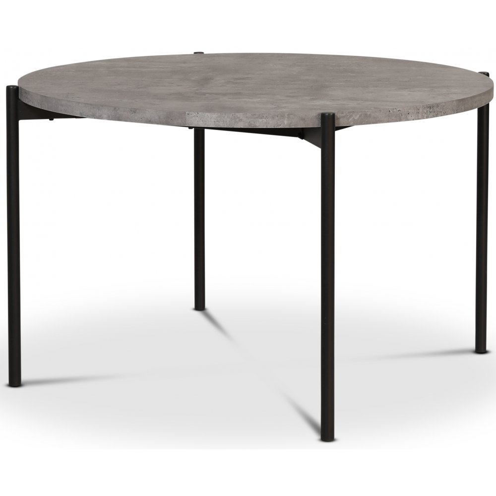 Stilren och modern matgrupp med toppskiva av MDF med cementimitation och underrede av svart metall.