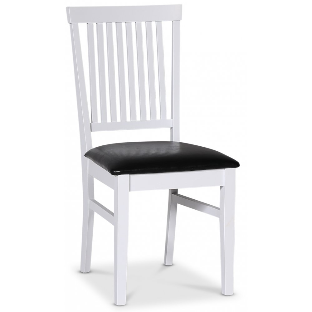 Skagen matgrupp; klassiskt matbord 140x90 cm - Vit / brunoljad ek med 4 st Fårö stolar (Ribbor i ryggen) med svart PU-sits