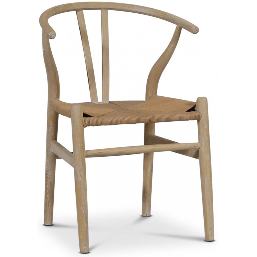 Klassiska matstolar i karm-modell med stomme i whitewash-behandlat almträ och flätad repsits av papperssnöre. Levereras monterad.