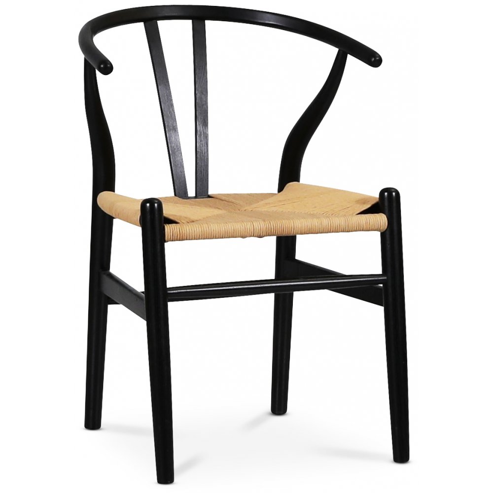 Klassiska matstolar i karm-modell med svartlackad stomme i almträ och flätad repsits. Levereras monterad. Design som varar i framtiden.